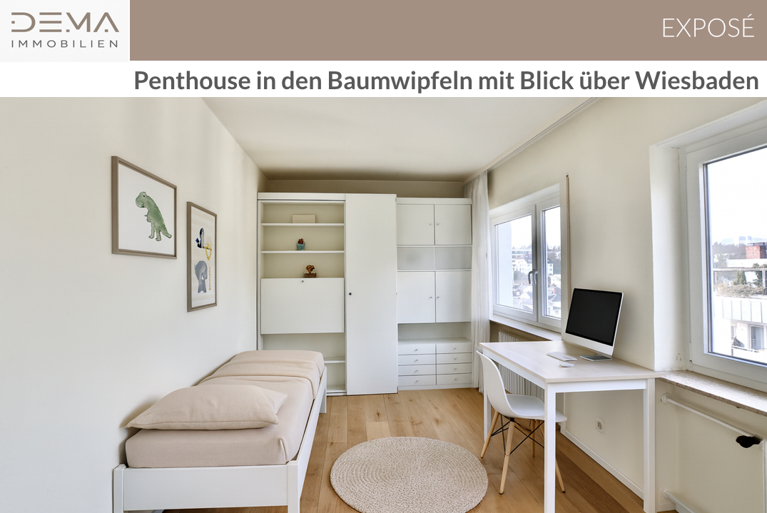 Dieses großzügige 4‑Zimmer‑Penthouse im vierten Obergeschoss besticht durch rund 181 m² Wohnfläche, eine perfekt durchdachte Raumaufteilung und ein Wohngefühl, das sowohl Offenheit als auch Geborgenheit vermittelt. Dank der riesigen bodentiefen Fensterfronten genießen Sie auf der einen Seite einen atemberaubenden Blick über die Stadt Wiesbaden und auf der anderen Seite das Gefühl, mitten in den Baumwipfeln eines parkähnlichen Grundstücks zu leben.